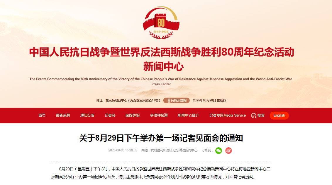 8月29日(星期五)下午3时期货配资开户论坛,中国人民抗日战争暨世界反法西斯战争胜利80周年纪念活动新闻中心将在梅地亚新闻中心二层新闻发布厅举办第一场记者见面会,请民主党派中央负责同志介绍对抗日战争的认识等方面情况,并回答记者提问。(记者范思翔)